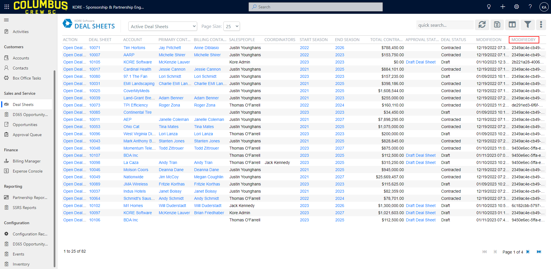 We want to be able to quickly see who was the last person to edit a deal and when. Currently, the Modifiedby field is populating with a user's CRM ID instead of their display name, making it difficult to determine who edited the deal without knowing the CRM ID.